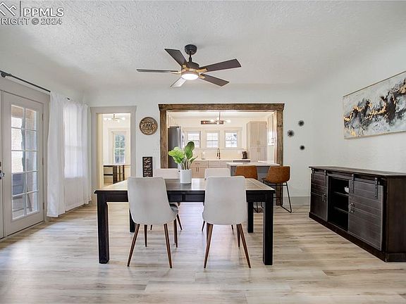 Welcome to this charming rancher whose ambiance speaks volumes, combining a warm, inviting atmosphere with sleek contemporary touches. While there's a sense of timeless character throughout, the layout is comfortable and functional. An open floor plan brings in beautiful natural lighting to the living room which leads into the dining area. French doors open from the dining room to a covered patio for al fresco dining. The kitchen features quartz counters and barstool seating with updated cabinets & stainless steel appliances. The main level is completed by the primary bedroom, two additional bedrooms, and a full bath. Walk downstairs to find a spacious family room, perfect for entertainment. This level also includes a flex room that can be used as an office, a convenient ¾ bath, and laundry space. This home boasts a recently installed central AC system to provide comfort on warmer days. Still want to enjoy the outdoors as temperatures begin to cool? A gravel firepit area is ready to create a cozy atmosphere. The detached 2-car garage provides space for parking or additional storage. Experience the perfect balance of living in the heart of the city and the tranquility of being within walking distance from Memorial Park. Located within a 10-minute drive of downtown Colorado Springs, this home is perfectly positioned with proximity to top-tier amenities and entertainment.