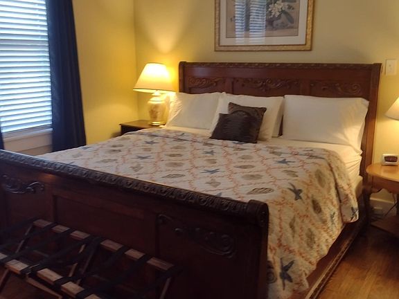 This lower-level one-bedroom apartment includes all furnishings a King size bed in the master bedroom and a separate bathroom. and Includes a separate living room, dining room and kitchen with all cookware, cooking and dining utensils. Bath Linens and towels are all included as well as an In-unit washer and Dryer. Wi-fi with Hulu TV and all utilities included. Fully furnished utilities, hulu, wifi included designated free off-street parking washer and dryer included in unit NO smoking pets must be maintained at all times