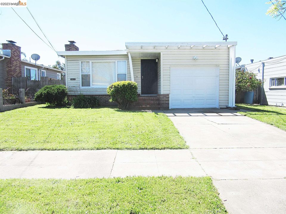 Great starter home. 2 Large bedrooms, formal dining area, large living room with fireplace, new bathroom, sunny kitchen with electric stove top and oven, attached garage with entry into kitchen. Large spacious back yard.