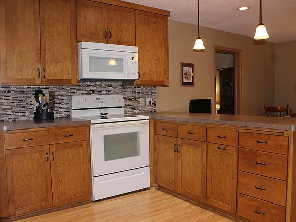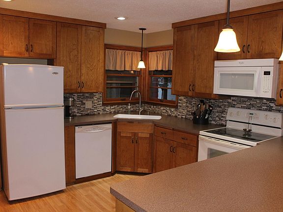 Very spacious 2 bedroom rambler updated throughout. Open floor concept with living and family room on the main level. Front and back attached garages with breezeway/mudroom access to the home. Beautiful kitchen features updated cabinets, countertop, flooring and appliances. Large 8 x 5 walk in closet adjacent to the family room as well as a nook perfect for a desk. Patio doors step down to a private 14 x 12 3 season porch that has access to the backyard concrete patio or the front breezeway. The basement is mostly finished with another TV hang out for teenagers and great potential for a 3rd bedroom. Also a 3/4 bathroom and tons of storage. Even a built in shuffleboard game installed within the floor. Updated mechanics include: 2021 FA/CA; 2013 HW heater, 2011 roof, 2013 gutter K Guards, much more. Backyard with garden shed and alley access.