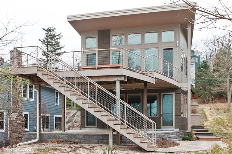 Entertain family and friends at this spectacular,fully renovated California style beach-front get-away with all the bells and whistles at the highest quality of finish.Four bedroom and three and 1/2 baths 3436 Sq Ft open concept floor plan has soaring floor to ceiling windows directly overlooking Lake Michigan. Parking, quiet master bedroom, with bath, contemporary kitchen, living dining room, powder room and huge deck all on main level-a perfect place for easy living and entertaining. Bonus family room, second master bedroom with ensuite bathroom, two guest bedrooms with shared full bathroom. Covered outdoor patio on beach level for added rest, relaxation and socializing- if it rains! Two minute walk along level sandy path that meanders through dune grass meadow, to secluded, erosion free Lake MI beach.