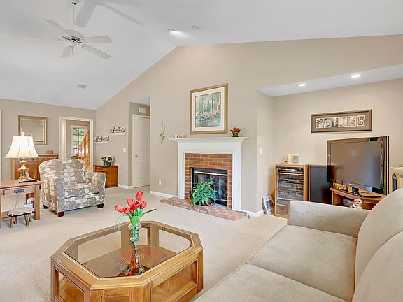 This adorable brick condo is 3 bedrooms, 2.5 baths with an oversized living room that features vaulted ceilings and a brick fireplace. The large primary bedroom, located on the main level, features a large ensuite bathroom with separate his and her sinks, two separate walk-in closets, a walk-in shower and a spacious jacuzzi tub. Laundry is also on the first floor. The upstairs has one bedroom with a full bathroom, plus plenty of storage. Plus, it has the cutest little back porch. The perfect spot to sip your morning coffee! Located in Old Farm near shopping, restaurants, schools and Wisegarver Park.