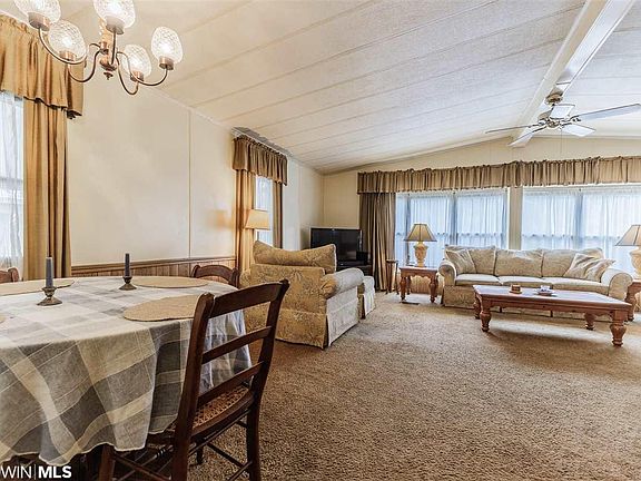MOVE in READY!!! Upon entering this 2 Bedroom 2 full bathroom WIDE MODULAR the kitchen is open to the dining with a massive living room serving as an entertainers dream. Lovely attached screen room surrounded by shade trees attached to covered car port, fenced in backyard with air conditioned woodshed/WORKSHOP that is insulated. Spanish Cove is one of the best kept secrets in South Alabama and sought after for being highly affordable. Nestled in a forest of hardwoods and pines on the western shore of beautiful Perdido Bay, this mature community provides a wide variety of living styles with something for everyone. As an owner in Spanish Cove you have lots of amenities available such as: heated indoor/outdoor pool, beach area, two clubhouses, fishing pier, parks, tennis courts, 24/7 private security, activities, minutes from Gulf Shores, Orange Beach, & Foley, just across the bridge from Pensacola, Florida and all at a quiet, easy going pace.