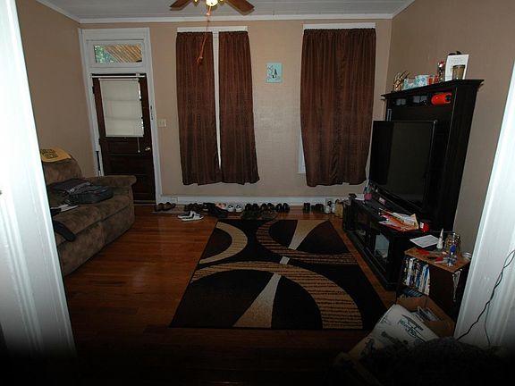 * Two bedroom house with approximately 900 square feet of living space. Vinyl exterior and large rear yard. * Natural gas forced air heat throughout. Natural gas hot water heater. * Vinyl, double-hung windows. * Kitchen (14' x 10') with wood cabinets & tile flooring. Refrigerator and gas range provided. Washer/Dryer hookups kitchen. * Living room (14 x 10) with ceiling fan and hardwood floors. * Dining room (12 x 11) both with hardwood floors. * Full bath (9.5' x 7') on 2nd floor with shower over tub and vinyl flooring. * Bedroom1 on 2nd floor (11' x 10') with carpet and closet. * Bedroom2 on 2nd floor (12' x 10') with carpet and hall closet. * Front porch (14' x 6') with concrete floor along Mifflin St. * Rear, elevated wood deck (14' x 10') with access to house and yard. * Off-street gravel parking area access from alley at rear of lot. Additional street parking along Mifflin Street. Tenant pays all utilities