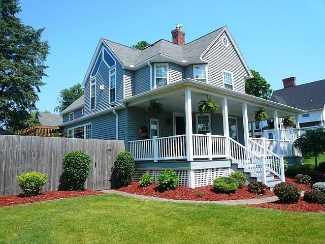 Beautiful, remodeled 2 story home. Large newer kitchen, lots of cabinets and beautiful counters. Large eating bar in the island that includes stove and vegetable sink. Pot rack. Stainless appliances. Two skylights in the eating area. French doors to the 16' x 18' deck plus deck surrounding the above ground pool. Main floor master suite includes bath with whirlpool tub, separate shower and 2 sinks. Large dressing room has 2 walk-in closets. Book shelves surrounding the 2-sided fireplace and master bedroom. Main floor laundry room has built-in ironing board. Living room has a beautiful mantel, approximately 100 years old, around the 2-sided fireplace. Upstairs has 3 bedrooms, computer room, large family room with gas fireplace and 2 skylights in the cathedral ceiling. Spiral staircase goes to the third floor that is open to look down to the second floor. Three car detached garage with loft. Dog pen behind. Six panel doors, oak banisters and great closets! AHS Home Warranty!