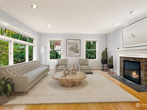 New Price on this updated 1920s Craftsman in one of Seattle’s most desirable neighborhoods! Centrally located, this gem is a short stroll to Green Lake (7min), Woodland Park (2 blocks), and Tangletown (6min). The main floor is an entertainer’s dream, featuring a chef's kitchen w/high-end appliances, covered deck off kitchen, media room that opens to back patio, and natural light in every room. The fully finished basement gives flex options w/ bonus room, additional bedroom & living space with separate entrance. An oversized 5,350 sqft lot offers a rare, detached 2-car garage with gated entry, and additional driveway parking for 3 more cars. Security system installed. Enjoy the low maintenance and private backyard. Easy access to I5 & 99.
