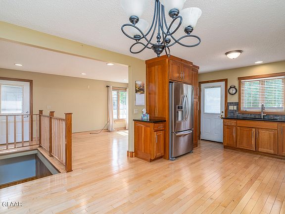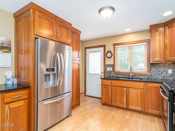 This home has custom cabinets, granite countertops, hardwood floors, newer windows, and siding. Both bathrooms have been updated. Outside you will find a large detached 30 x 32 garage with a bathroom, furnace, and pull-through garage door to ally access.