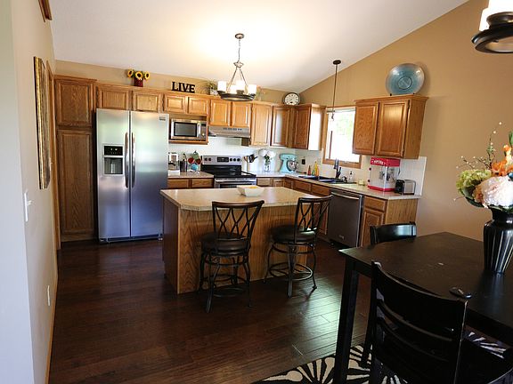 Great home in West Wichita! Minutes away from New Market Square and in desirable Maize School district! This 5 bedroom, 3 full bath home features a large kitchen with scraped wood flooring, stainless steel appliances, new counter tops and large island! Laundry room is on the main level and right off the kitchen! Spacious bedrooms, wood burning fireplace, and finished view out basement with 2 additional bedrooms. Additional highlights include attached 2 car garage, and covered deck that overlooks a gorgeous backyard that has no neighbors behind you! Brand new exterior paint This home is sure to please so call today!