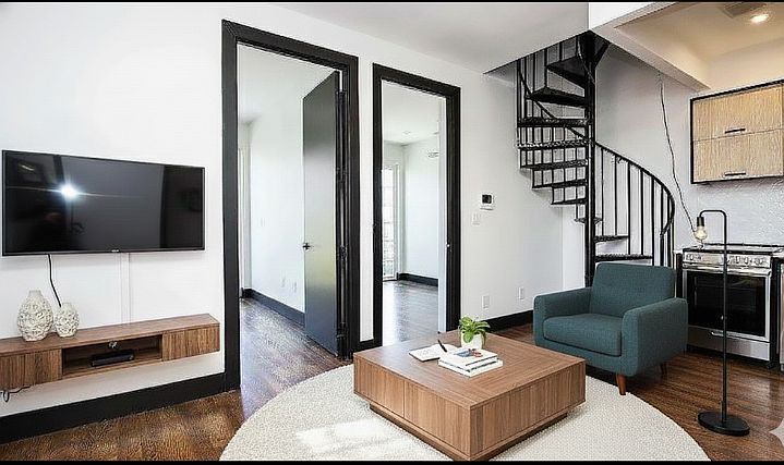 Hello! Take a look at this lovely 3-bedroom, 2-bathroom duplex apartment. It features plenty of sunlight streaming in through the floor-to-ceiling windows in each room, along with ample closet space. You'll also enjoy a balcony and a private rooftop area to relax. The kitchen is equipped with stainless steel appliances, including a dishwasher. Plus, the building is conveniently located near various shopping stores.
