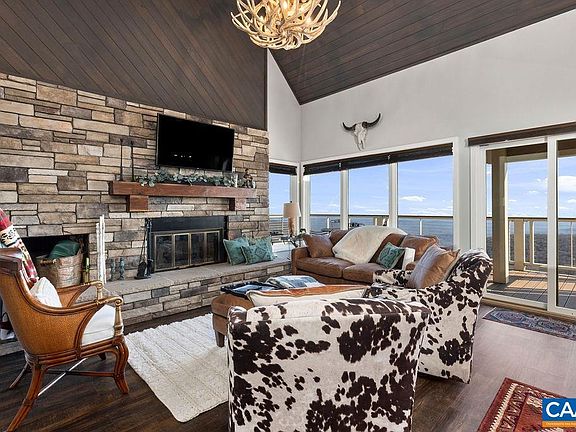 This is the best floor plan, view exposure and outdoor living space a condo at Wintergreen can offer. This top-floor, end-unit villa will give you as much privacy and space as a moderate-sized home but at a much lower price point and with superior views. There is a large wrap-around trex with stainless steel cables deck to enjoy the awe-inspiring mountain, valley, and sunrise views all year round. On a clear night, you can see the lights from the towns in the valley to the East and South. The floor plan is very generous and bright, with a large kitchen that is open towards the great room and the dining room. Walls of glass allow you to enjoy the spectacular views from almost every room in this villa. The primary bedroom is on the main floor. There are two nice guest bedrooms with en suite bathrooms upstairs. The cathedral ceilings and the stone wood-burning fireplace are the focal points of the great room. The villa's interior has been beautifully renovated and very elegantly decorated in a mountain flare style. For a top-floor Overlook condo, this property has fairly easy access from the parking lot to the condo front door. Conveys furnished. This is a rare offering.