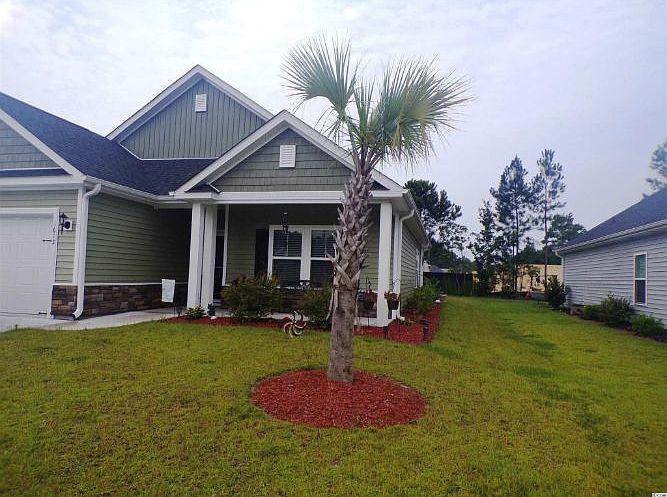 It really IS all about location, location, location. This lovely 3-bedroom, 2-bath open-concept home in very the desirable Palms at Sago Plantation is only 3 years old, and located in the Carolina Forest Tanger Outlet area. It's conveniently located within moments of shopping, dining, entertainment and all the best that Myrtle Beach has to offer. It features wood and tile flooring throughout, and a granite-and-stainless kitchen with 42" inch cabinets that offer oodles of storage! Kitchen also features a closet pantry with automatic lighting, and a roomy island with pendant lighting that provides additional storage and breakfast bar. Vaulted ceilings just add to the sense of space and light. Spacious and bright master bedroom features a large walk-in closet and tray ceiling. The indoor laundry room provides extra storage, as well as great convenience. This exceptional package is made complete by a covered patio designed for outdoor entertaining of all kinds, and a comfortable, relaxing front porch that just perfect for those Southern rocking chairs! Extra wide driveway creates ease of parking, and a concrete pad was added for your outdoor grill. Schedule your private showing today!
