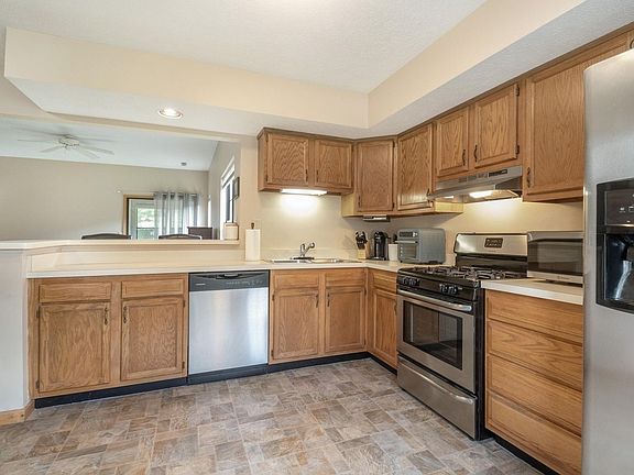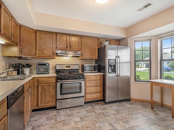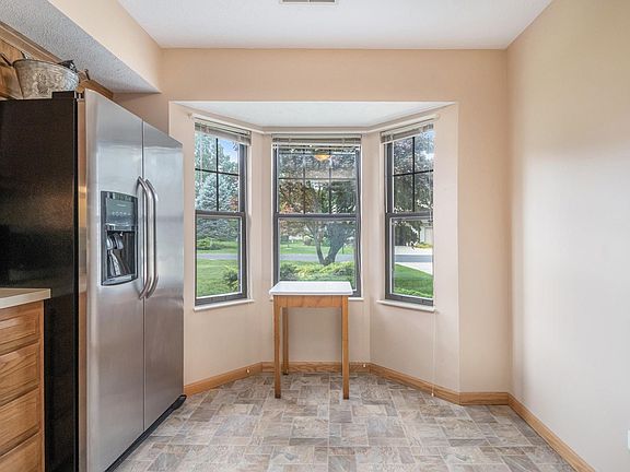 Beautiful well maintained condo in Pine Ridge subdivision. A large bright, open living area connects to the spacious kitchen with bar seating. Stainless appliances and neutral colors. 3 season room is a bonus space with an attached fenced area for pets. Large 2-stall garage. Close to Cobblestone Shopping and Dining. Agents please turn off lights after showings.