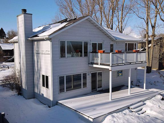 Start the New Year off with an affordable Waterfront Home! This 2 story home is nestled in the trees in a desirable RIVERFRONT neighborhood north of Mandan. The home offers a 2 story foyer with access to the living room off the right. The living room has a woodburning fireplace and a newer Pella bay window. Off the living is a dining room that is open to the beautifully remodeled kitchen (2017) with plenty of rich stained maple cabinets, quartz counters, tile backsplash, vinyl plank floors and a center island. There is a huge walk in Pantry! Just a few steps from the kitchen is a mudroom off the garage. The main floor also offers a half bath. The upper level has new carpet just installed and features a loft area with plenty of windows offering fabulous views of the river! There is a Huge owners bedroom with walk in closet and walk through bath with tile shower and vanity with dual sinks and new vinyl plank floor just installed. There is an additional bedroom up. The basement is unfinished but offers space for 2 additional bedrooms and bath or a family room, bedroom and bath. There is steel siding, some newer windows, a maintenance free front porch and back deck. There is a large triple garage and there is access to the basement from the garage. There is a gazebo near the river that overlooks the gorgeous Missouri River. There is 94 feet of river frontage with the ability to have a dock. No flood insurance required--family states that water in 2011 only reached the bank, no water on property.
