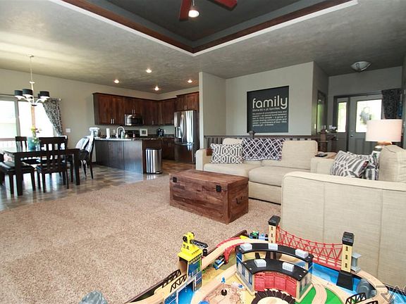 Beautiful & meticulously clean ranch-style home featuring 5 bedrooms, 3 bathrooms, and a oversized 3 stall garage!!! This open modern concept with a gorgeous kitchen, tons of cabinets space, stainless steel appliances, high definition countertops, breakfast bar and a slider to a covered deck is a must see. The living room focal point is a gas fireplace with beautiful tiled surround and a two-toned tray ceiling. Good size Master bedroom, with double vanities, Modern tiled shower, Tray ceiling with inset lightening and a large walk in closet! The main level features two additional bedroom, main floor laundry and a full bathroom. Entertaining will be no problem in this home as the Family room is "HUGE"!!! There are two more Large bedrooms downstairs and a 3/4 bathroom. The garage features top notch cabinet system, plus a drain! This home is nearby schools, libraries and the grocery store, so convenient for the next owners of this home. Come check it out as it won't last long!