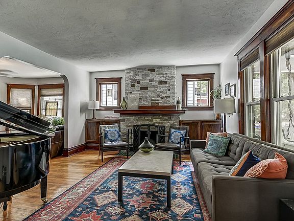 Must see this completely updated 2 story in Hawthorne Place. 3 Bedrooms with bonus room on the second floor. Walk up third floor has been updated to cater to any need. You'll love the main floor laundry & potential for a main floor master suite. This spacious & practical floor plan has endless possibilities! Current owner has lovingly restored this home; enjoy a new roof in 2019, stone front addition to an already charming fireplace, family room w/custom, solid wood built ins, quartz counter tops, new walk in shower, tile in bathrooms and new deck that spans the back of the home. The privacy fenced backyard boasts a shed & an expansive deck where you will spend your summer days in the shade of mature trees on the lot. Stained glass windows hanging in family room remain with the house. The exquisite character in this delightful 2+ story home has been meticulously maintained and the tasteful updates are cherries on top!