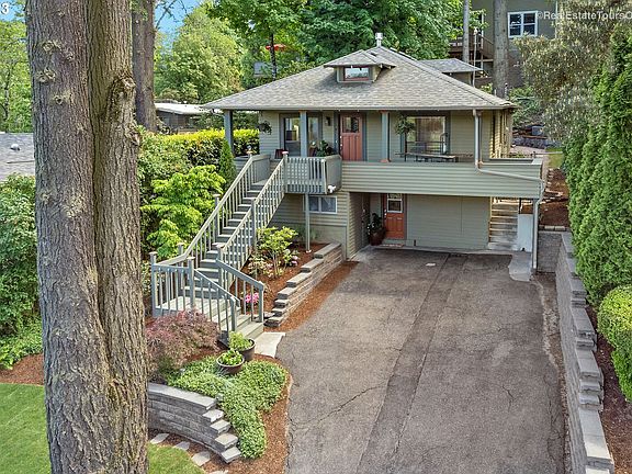Beautifully Updated 1924 Craftsman with Pristine Sweeping Views. Enjoy a full length covered front porch overlooking Council Crest, nestled within the trees. Enter into open entry into the living room area, complete with gas fireplace, millwork, gorgeous built ins, cherry wood floors, and designer paint colors. Kitchen boasts stainless steel professional 6 burner gas range, granite tile countertops, custom painted cabinetry, nook, and eat up bar. Downstairs features a second living room, full bathroom, separate entrance, huge multipurpose space, laundry, nook, and a large workshop. Full attic space with stair entry and finished floor for lots of storage. This home has it all: Views, Original Charm, Tasteful Updates, and Storage Galore! [Home Energy Score = 6. HES Report at https://rpt.greenbuildingregistry.com/hes/OR10214807]