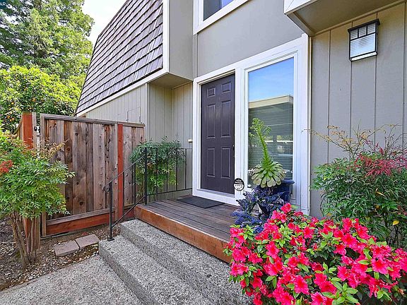 OPEN SAT & SUN 1-4PM. Opportunity to own in the rarely available Larkwood community. This beautifully updated Townhome is the premiere unit in the complex. Only 24 units in this small community and this is the ONLY 2 bed 2.5 bath. Enjoy a great floor plan and excellent natural night. Gorgeous kitchen with quartz counters, large island, custom cabinetry, dining area, stainless steel appliances, double oven, pantry, & nook for wine fridge. Other features include high-end wood flooring, recessed lighting, window coverings, gas fireplace insert, updated bathrooms, & large master bedroom with walk in shower. Newer (2019) Anderson windows, HVAC system, & water heater. Relax or entertain in the secluded backyard area which features a pavered patio, outdoor lighting, garden boxes, storage shed, mature orange tree & foliage. Community pool and ample guest parking. Unbeatable freeway access in all directions. Close to BART, shopping, Larkey Park & walking trails. This is a GEM!! Video tour available at: https://youtu.be/4YsNlWEmmzA