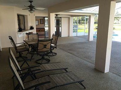 The moment you step in you'll love the wide open space and immediate picturesque view of the pool and golf course. In exclusive Manor Hill, middle fairway on the 17th hole of Deer Run. Beautifully remodeled kitchen with light color cabinets, GRANITE, large window/bar into caged in pool area. Master suite separate from other bedrooms with sliders to pool . Oversized bathroom, large shower, large tub w/jets and extra extra extra large vanity area with 2 sinks, GRANITE TOP, separate toilette room. The large L shaped utility room is ideal for sewing, hobby or office area. Even the guest bath has a double bowl. Pricy roll-up blinds by Blinds ASAP in the family room, living room and dining room. Enjoy gorgeous sunset view from the pool. Meticulous owners live here - shows very well. Owners would consider selling some of the furniture. Shows like a 2000+ home.