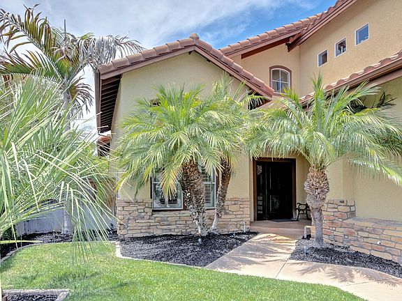 Boasting the largest floorplan in Flora Vista, this impressive residence showcases more than $300,000 in luxurious upgrades. Vaulted ceilings soar over a raised foyer and formal living room, and a formal dining room displays a barrel ceiling and custom stacked-travertine 3-sided fireplace. A dry bar complements a great room with custom fireplace featuring black granite surrounds and a heat blower. Black granite continues in a remodeled kitchen with 72" built-in stainless steel GE Monogram refrigerator/freezer, Thermador 48" range, Fisher & Paykel 2-drawer dishwasher, alderwood cabinetry, an island and a breakfast nook. Additional appointments include a 1st-floor office/bedroom with built-ins; plantation shutters; walnut, ceramic tile and travertine flooring; and marble or granite countertops and custom showers in baths. A curving staircase is illuminated by a skylight and provides passage to a game room/bedroom with walk-in closet and cork wall. Vaulted ceilings highlight a master suite with bay-windowed sitting area, 2-sided fireplace with stacked travertine, walk-in closet with mirrored doors, soaking tub, and shower with marble surrounds. The backyard reveals a built-in BBQ, and a saltwater pool and spa with 2 waterfalls.