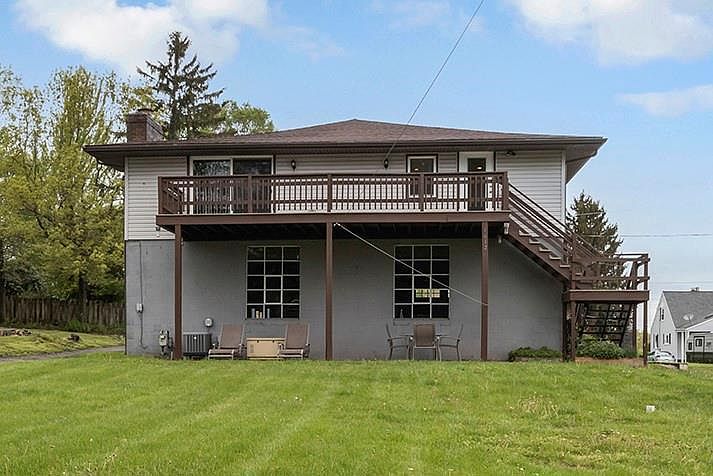 This beautifully updated home meets the criteria of the best of both worlds! The 3 bedroom, 2 1/2 bath has spacious rooms! The updated kitchen has granite counter tops and stainless appliances. It also has a Greenfield water filtration system. The first floor laundry room has a utility tub and includes the front load washer and dryer. The enormous 46x42. 6+ car heated garage is a car enthusiasts dream! It was fully renovated and includes a compressor, Generac/natural gas, auto generator, overhead trolleys, toilet, utility tub and work benches! There are 2 stylish, new 10'H x 10'W garage doors. The home has a large level lot and huge deck with a view of the city (even Pgh fireworks)! Living room fireplace is decorative only. One block from Patterson Twp, short walk to Patterson Elementary School.