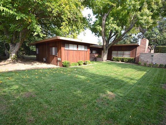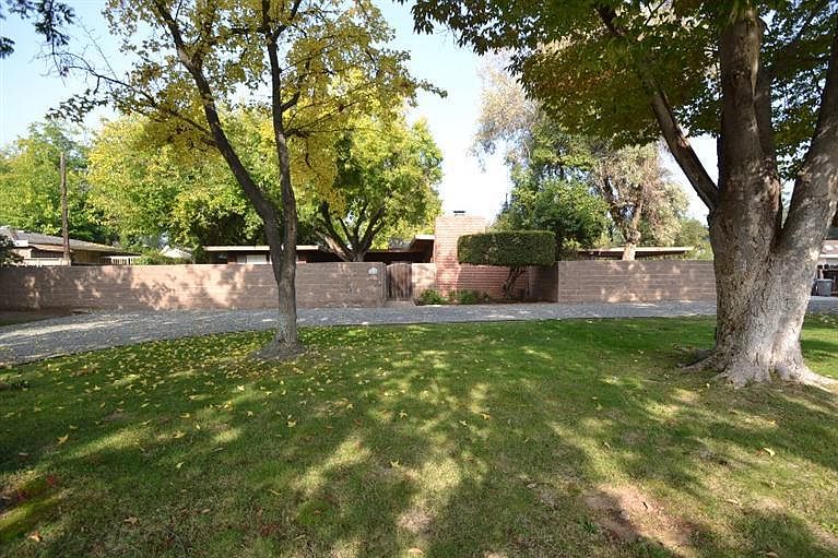 Enjoy the beauty of the outdoors with this 25,610 lot in Northwest Fresno! This graceful Frank Lloyd Wright inspired home with clear redwood siding, has an enclosed courtyard with lovely brick raised flower beds. The kitchen features stainless appliances, stainless sink and fixtures. The stove is oversized with a convection oven and 2nd side oven. A cozy dining nook is perfect for morning meals. The dining room includes a built-in buffet and opens to the family room with an ideal brick fireplace and built in cabinets with book shelves. Two spare bedrooms have walk-in closets and a third bedroom has built-in drawers. The master is isolated on the opposite side of the home. It includes a master bath and sliding doors to the back yard. A large laundry opens to the backyard. This immense yard is amazing with huge, mature trees to provide tons of shade in the hot summers. There is plenty of space to build your dream garden or pool. You will love this stylish home!
