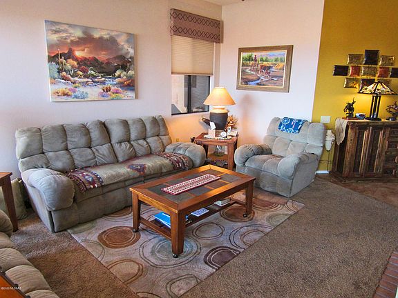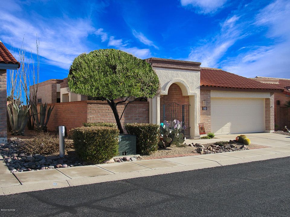 * VIEW VIDEO: https://az.movinghometour.com/22004713_Tucson%20MLS * If tasteful Southwest decor is your preference, your search is over! This 3-bedroom, 2-bath home features neutral colors, 1,706 square feet, great room with FP, dining room, and laundry. Home is being sold FURNISHED--furniture (marked pieces are excluded), decor, linens, kitchen items--just as pictured. The third bedroom is currently used as an office. The well-appointed kitchen boasts slate appliances and a gas range. The large master bedroom has a connecting bath with dual sinks and a distinctive arched entry to the tiled shower. Best of all, the oversized garage has space for your golf cart or even a workshop! The rear patio is just meant for enjoyment of your morning coffee or evening cocktails with friends and family! But....want an intimate screened porch?