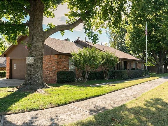 This lovely home sits on a corner lot in the prestigious Smoking Oaks addition. This home comes with fresh paint throughout, newly steam cleaned carpets, walk-in closets, ceiling fans, wood burning fireplace, plenty of inserts, security system, ceramic tile, large covered porch, large patio, shed with electricity and a/c, outdoor natural gas hook up, sprinkler system with it's own well, new barrier wall, mature trees, sidewalk, wrap around gutters, new roof and HVAC, and so much more. So close to I-35, OU campus, shopping, dining, and within walking distance to the Trails Golf Course and Country Club. Don't miss out!!!!