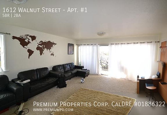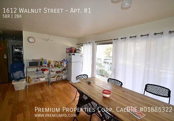 Massive 5 Bedroom Unit With 2 Full Bathrooms PLUS 2 Full Size Refrigerators! Perfect Space For Collaboration, Working, Studying Or For Anyone In Need Of A Large Apartment In A Great Neighborhood! Must See, Will Move Fast, So Please Come See! THIS BEAUTIFUL FIVE BEDROOM 2 BATH 2 REFRIGERATORS UNIT FEATURES: Spacious Floor Plan 2 Full Baths 5 Full Bedrooms + Balcony Rare Large Unit In North Berkeley, Truly Awesome! Walking Distance to UC Campus Upgraded Kitchen with Granite Counters Large Closets Nice Surrounding Area Views Sunny & Bright from Ample Windows Close to BART and Downtown Berkeley Water and Garbage Included Professionally Property Managed For Premium Service Walnut Street Apartments 1612 Walnut Street Berkeley, CA 94709 PROPERTY DESCRIPTION The Walnut Street Apartments is a beautiful 9 unit apartment community featuring a mix of spacious apartments. These remodeled apartments have stunning hardwood floors, high ceilings, large windows, providing ample natural light, over-sized rooms, gigantic closets and period kitchens with gas stoves. The property also features a share laundry room and off street parking spaces. Many units offer balconies which look over the beautiful Berkeley Hills, Oakland, and the San Francisco Bay. The many windows bring in plenty of natural light giving the apartments a warm feeling. THE PREMIUM DIFFERENCE This property is professionally managed for Premium Service! We treat you like a customer and you can expect a high level of service from a friendly staff who's primary goal is to make you happy. We resolve any maintenance issues quickly and efficiently. Our properties are well maintained inside and out. Why rent an ordinary property when you can live in a Premium Property? NEIGHBORHOOD INFORMATION This building is perfect for someone who wants to be centrally located close to Downtown Berkeley and the UC Berkeley Campus. Trader Joe's, coffee shops, various restaurants, and cafes are walking distance from the building making this location very convenient just a quick walk to everything. Ohlone Park is located directly across the street and is perfect for small picnics, sunbathing, and basketball. If you enjoy a vast array of neighborhood cafes, great coffee shops, interesting and eclectic retail stores, you will feel instantly at home. The area of North Shattuck Ave offer some of the best restaurants in the East Bay Area including the Cheeseboard and Chez Panisse. The Downtown Berkeley BART station and bus lines are close, making your commute easy to access by public transit. There is also ample street parking in the area for your guests!