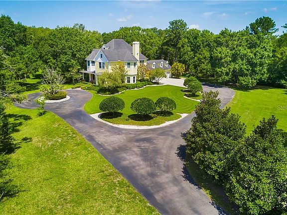 Savannah style custom built home tucked away on a private lot down an oak tree lined drive. The Cape Cod architecturally designed home is a hidden gem in Odessa. This one of a kind home affords the quite & privacy of country living on 2.24 acres. An amazing home to raise your family, great for large family gatherings or grand entertaining. This 3,200 sq ft home interior with finishes including: Brazilian Cherry wood floors, ceramic floors, Travertine, custom built in cabinetry, 8 ft solid wood doors, custom baseboards, wainscoting & window casings, tray ceiling in dining room & granite counter-tops to name a few. Gorgeous 4 bedroom, 3.5 bathrooms, 4 car garage w/walk-in attic, separate eat-in kitchen, master bedroom suite with reading room and large walk-in closet, expansive size pool 20 x 50 w/cascading waterfalls & covered lanai/BBQ/grand entertaining area is a MUST SEE! All patio furniture stays with the home. The home is surrounded by beautiful lush natural, mature landscaping, Live Oak & Magnolia trees welcome you home. No HOA, NO flood insurance, No water bill, Culligan Platinum care service, over abundance of storage space, top rated schools. This incredible estate home is ideally located minutes from Tampa International Airport, local businesses, dining, shopping, major highways and Florida's best sandy white beaches. Your private paradise awaits you! Take the virtual tour -- breathtaking experience sure to delight. A must see to appreciate the care and a