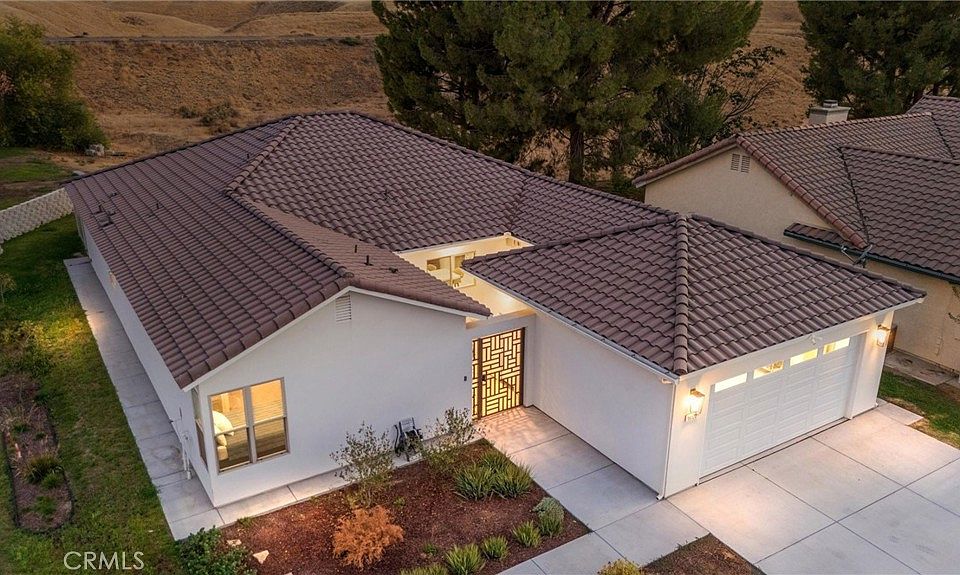 This house has it all. 2 bedroom, 2 bath, with a third bedroom option, new construction in park like setting with lush green grass and mature trees, in gated, Rio Bravo Resort. Hillsides views and Bakersfield sunsets. Open floor plan with upgrades galore. Italian ceramic 24 inch tile floors in kitchen, dining and bathrooms. Premium quality carpet with pet proof padding in living room and bedrooms. Two toned Sherman Williams paint on Shaker style cabinetry with soft close drawers. Upgraded appliance package with subzero refrigerator. Deep double kitchen sinks with touch technology faucet. Subway tile backsplash in kitchen. Quartzite covered kitchen island that seats eight in addition to dining room seating. Has separated coffee/cocktail making bar with own sink and beverage refrigerator. Custom glass wine closet with cooling system that can accommodate two hundred bottles of wine or sparkling cider. Custom electric window covering in kitchen and living room. Stunning electric fireplace encased in beautiful tile with quartzite mantle and bookended built-in cabinets. Window coverings on all windows. Ceiling fans in all rooms and outside back patio. Barn doors in both master and guest-rooms. A brilliant use of space off the dining area is a smart-room integrated with walk in pantry, washer and dryer hookups, built in work station and beautiful multicolored glass tile dog wash. A must see for pet lovers! So versatile, you can use it for handwashing your delicates. Enter the large master suit fit for royalty with large viewing windows to allow for natural light and hillside views. Primary bathroom boasts spa-like amenities with soaking tub, double vanity, walk in shower with floor to ceiling custom tile, dual shower heads; rain shower head and handheld shower head. A private area with Toto Bidet toilet that greets you as you enter the room with lid rising, perfect lighting, heated seat and auto flush system. A separate makeup vanity with lighted mirror and hidden storage for all your beauty essentials. Huge walk in closet with ten foot ceilings to accommodate third row seasonal wardrobe, two built-in dressers and shoe display. Epoxy floor and built in storage in the garage. Vinyl fencing encloses the backyard of artificial turf bordered by beautiful flowering plants and herbs. Covered patio area for outdoor dining with sliding door entrance to kitchen. Private courtyard entrance with beautiful custom iron gate.