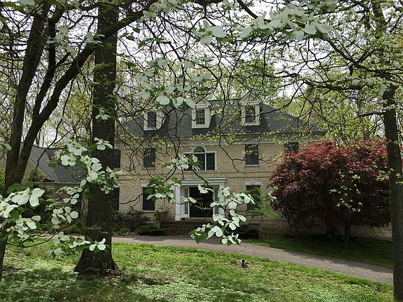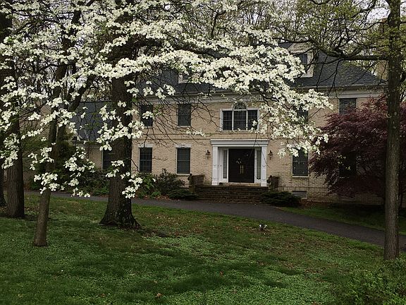 Georgian style home, minutes to specialty grocery store and high-end mall. Marble floored foyer. Austrian crystal chandeliers in the entrance and formal dining room. Formal living room. Large master suite. Large 3-car garage. Vaulted ceiling in library. Coffered dining room ceiling, walk-in closet in master suite, jetted tub, double sink in master bath, library, family room, 3 fireplaces. Sits on 4.6 acres. Skylights in bedroom and bathroom. Separate thermostats on 3 separate floors. Updated kitchen and stainless steel appliances. Laundry/mud room. 3 floors and open basement with lots of storage. Separate work room. Potential playing field in front. Circular asphalt driveway. Variety of fruit trees. Magnolia tree collection. Walkable neighborhood. Residential/ bucolic setting.