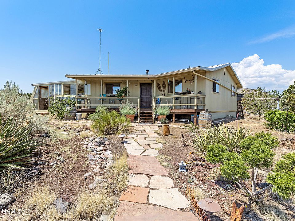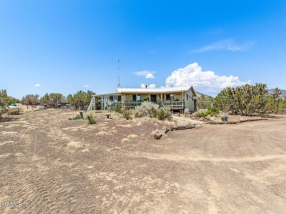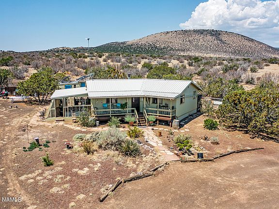 Welcome to the West where the views are endless. The property consists of a charming 1008 sq. ft. home with a 24' x 15' Classic Arizona Solar Room. Several functioning outbuildings as well including an insulated art/music studio with a small living space, a building for the solar equipment along with additional storage and stand alone storage shed. All buildings equipped with metal roofs. Water supply is available with a 2500 gallon cistern, gravity-fed water system and a 3000 rainwater collection systems. Don't miss this opportunity for self sustainable off the grid living. Views of the famous Roden Crater along with various other craters. Borders state land on 2 sides.