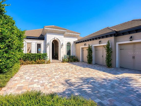 Designed to exacting standards with brilliant lake views, this three-bedroom plus den Arthur Rutenburg home in The Lake Club reflects the sophisticated and streamlined style of today's luxury buyer. Perfect for the master entertainer or family looking for a resort-style and smartly planned home, the residence offers naturally lit spaces for all of life's occasions and the versatility to accommodate the surprises. Enjoy delicate curved archways, soaring coffered and cathedral ceilings and both hand-carved engineered hard wood and wood-look tile flooring throughout. The central open living space features a chic living room with statement gas fireplace surrounded by custom built-ins, bright den with access to a paver courtyard, and formal dining room with dramatic curved cathedral ceiling. Showcase your inner host with a Michelin-level kitchen featuring Wolf and Sub-Zero appliances, farmhouse sink, granite surfaces, cleverly concealed oversized pantry, and massive rounded center island with granite lazy Susan for nights involving sushi or tapas. An adjacent breakfast nook with pass-through bar with wine refrigerator provides easy access to the lanai's summer kitchen and covered dining. True to the fine craftsmanship of Arthur Rutenburg, the home seamlessly blends indoors and out with pocketing glass sliders off the living room and doorways throughout the rear of the home. Savor the ambient sounds of the spa with spill over ledge, luxuriate in the heated saltwater infinity pool, and gather around the wood-burning firepit under an enchanting trellis covered in Mandeville and Jasmine. A ClearView lanai cage with subtle overhead LEDs allows you to enjoy lake views by day and twinkling starry nights. Master and guest wings are separated for the utmost privacy, with the master suite boasting beautiful lake views, tray ceiling, dual custom closets and impossibly spacious bath with dual vanity, and large walk-in shower. Guest bedrooms are equally dreamy with a second bedroom suite also overlooking the lake that can be converted into an office and a third bedroom with an oasis-style bath with stone detailing and wallpaper that matches that of the Marie Selby Botanical Gardens. Part of the home's subtle elegance is the clever way storage is introduced and the large laundry room with oversized Butler's pantry is no exception. A three-car, side-entry garage rounds out the home.