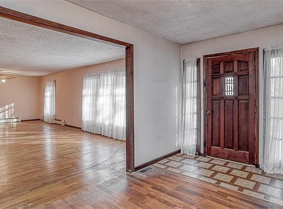 Peaceful country setting on 17 acres, just 3 minutes to grocery store and other shops! The seller would consider selling the house, outbuilding/barns (behind the house) and 5 acres as a separate parcel for 350k. All brick ranch offers instant equity with incredible potential! Formal living/dining with hardwood floors and wall of windows. Spacious kitchen with ample cabinet/counter space and a breakfast bar opens to family room with wood beams and brick fireplace. Enjoy your morning coffee on the covered porch overlooking views of nature and sunsets! Primary bedroom has private bathroom and 2 closets. Two additional bedrooms and 2nd full bathroom also on main level. Hardwoods under the carpet! Large mud room/laundry area and half bath right off garage. Huge, walk out basement is stubbed for a full bath and ready to finish or can be used for storage. North acreage is currently used as a hay field, providing hay for livestock or income producing! Barns/outbuilding. Awesome location outside of city limits, close to schools, highways, shops and dining!