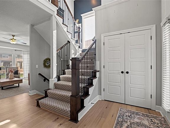 Don’t miss this stunning two story in sought after Stonebridge Trails! This well designed 6-bed/5-bath home boasts lots of upgrades and is completely move-in-ready. You’ll love the upgraded wood floors across the main level – including in the 5th bedroom (currently being used as a home office) – as well as the charming pantry and brick/wood accents. The primary suite offers a large soaker tub and generous walk-in-closet. The secondary bedrooms upstairs are also good sized and don’t miss the oversized closet addition at the front bedroom! Extend your family fun to the finished lower level with rec room (the shuffleboard stays!), wet bar, the 6th bedroom (ALSO offers a huge closet!) and 5th bathroom. The garage features epoxy floors and custom cabinets that remain. A lean-to addition on the west side of the house is perfect for your lawn mower and accessories. Enjoy evenings out back from the covered patio and roast marshmallows with friends and family around the extended patio with fire pit. If you need a fence, three sides are already in place from neighboring properties for you. Robust Stonebridge amenities include 4 pools/4 parks, a fitness center, club house for rent, trails, sports courts and events – like food trucks all summer long!