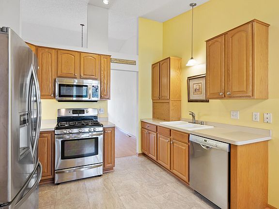 This home offers an open floor plan with soaring vaulted ceilings and a main floor primary suite! Easy main level living as the laundry is also on the main floor. Quiet backyard and located in a cul-de-sac in a great area with many walking trails and restaurants and shops nearby. There's still a ton of great storage space located in the finished lower level. HVAC installed around 2020 and a new H2O heater this year.