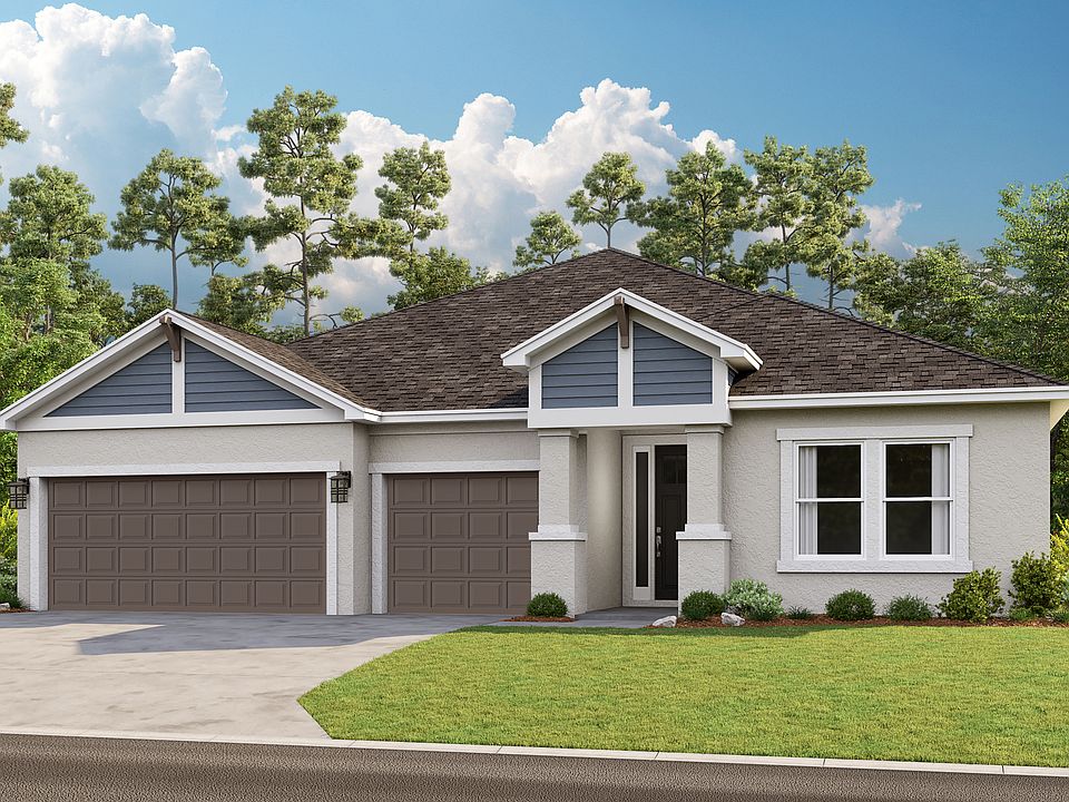The Java is a flexible home design that fits a variety of needs. Featuring a 3-way split plan centered around an open-concept kitchen and great room, this modern home is designed for comfortable everyday living. The 3 secondary bedrooms are located towards the front of the home. Bedroom 2 is located separately with an en suite bathroom, providing privacy for overnight guests or older children. Bedrooms 3 and 4 share a bath on the opposite side of the foyer. The primary bedroom is privately situated in the back corner of the home and includes a spa-like bathroom with separate soaking tub and shower. The massive gathering room can comfortably host a large party and over-sized sliding glass doors lead out to a covered lanai for the best of indoor/outdoor Florida living. A flex room rounds out the home and can be optioned as a study with doors.The Java plan can be upgraded to a two-story home with an upstairs game room and full bath or even a 5th bedroom.