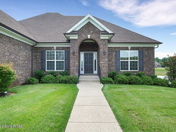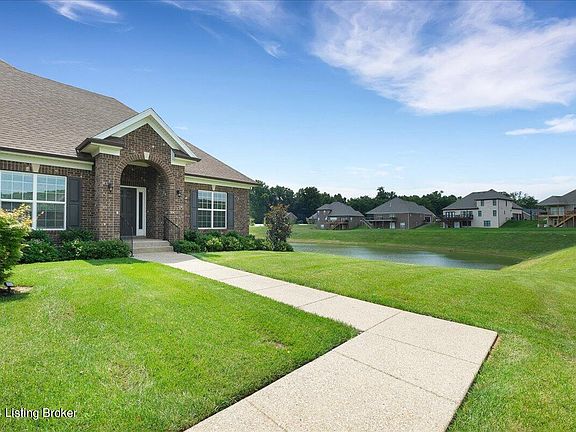 Experience the refined elegance of this exquisite brick ranch, gracefully positioned on a premier lakefront lot in Twin Lakes. Revel in the panoramic vistas from both the serene glass-enclosed porch and the expansive, meticulously designed deck. The open-concept layout features an inviting great room complete with a cozy fireplace that enhances the ambiance. Charmingly appointed formal dining area. The gourmet kitchen is a culinary masterpiece, showcasing a central island with breakfast bar, stainless-steel appliances, double ovens, a gas stovetop, microwave, wine cooler, a tastefully appointed backsplash, & soft-close cabinetry. Retreat to the luxurious primary bedroom, where a spa-like bath awaits, featuring a generous walk-in shower. Two additional bedrooms, elegantly appointed, share a well-placed full bath. Convenience is further ensured with a thoughtfully included half bath and a first-floor laundry room. The irrigation system maintains the lush landscaping effortlessly. The spacious basement is a blank canvas, equipped with an egress window for future expansion and plumbed for an additional bath. The oversized deck is ideal for sophisticated entertaining, while the three-car garage offers ample space for both vehicles and storage. Situated just off Old Henry, this residence is mere moments from all the vibrant offerings of Louisville. Arrange your private showing today to experience this exceptional property.