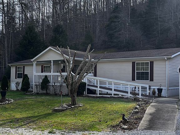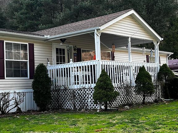 MINI FARM. Comes complete with a barn, pond, greenhouse, chicken coop and goat lot. The property sits on 13 acres, many of which are wooded and/or hillside; but that's the beauty of this property. Less to maintain but it's yours to hike, hunt and ATV ride plus more. Plenty of room for growing a vegetable garden. The main house is a large and immaculate manufactured home. Has a large living area with gas fireplace, plus a den which would be suitable for office space or even a 5th bedroom. Good sized kitchen and dining area and a large utility room. A cozy, covered front porch and a detached garage (18x24) with electric door opener complete the home. There are also several buildings included in the sale. The first building is a 10x10 bathhouse with two showers. Another building is a large 12x32 that is finished and has heat and electric. Could easily be used for a guest house or cozy living space. There is a 16x30 metal barn with an additional 2 stalls on each side. Great for boat or ATV storage. Two more buildings are also included that are finished and can be used as living space, hobby room, game room, etc. Enjoy all the mountains have to offer! Call for your private showing!