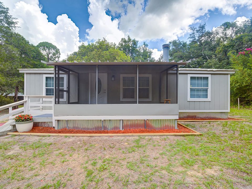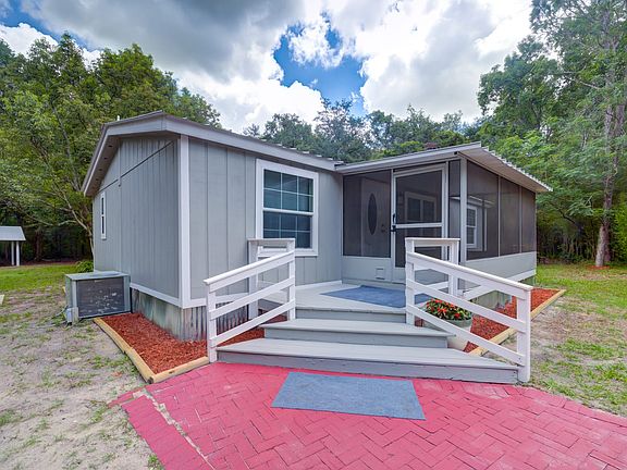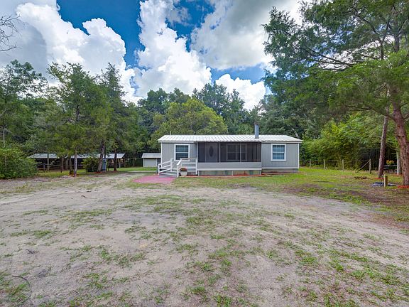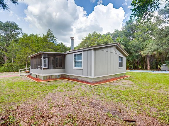 Picture it. Your own little country oasis you can come home to every day. This adorable home has it all. Aluminum roof goes perfectly with the aluminum skirting adding to the curb appeal. Quaint front porch with screened in area for relaxing and listing to the sounds of nature. Sitting on 2.50 acres is a 4 car carport along with 2 sheds. Inside is filled with fresh updates. Laminate wood flooring flows through every inch of the interior. The open floor plan flows from one room to the next. Vaulted ceilings with decorative wood beams gives that homey feeling. Cozy stone fireplace creates an inviting atmosphere. Kitchen is tastefully updated with stainless steel appliances and a center island. Clean lines and relaxing colors in the large master bedroom and plenty of natural light. Both guest bedrooms are a comfortable size. Both bathrooms are so fresh and clean! To end this tour we take you to the crowning jewel of the home. The in ground swimming pool is lined by palm trees and absolutely refreshing. Plenty of room to lay out your lawn chair and enjoy your day poolside. The property is surrounded by majestic winding oak trees creating the perfect rural setting. This home speaks for itself! Come see this beauty today.