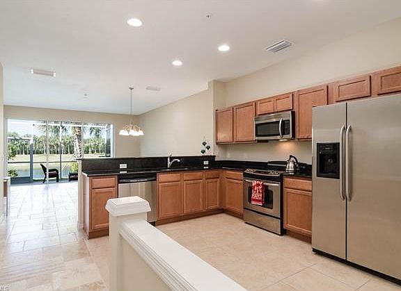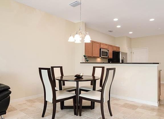 Beautiful and upgraded, turnkey furnished townhome at Verona Pointe offering 3 bedrooms, 2.5 bathrooms, and a 1 car garage. This IMMACULATELY maintained home shows like a MODEL! One of the best lots in all of Verona Pointe with long lake views and an extended pavered driveway. The first floor features travertine tile, an open floor plan that is perfect for entertaining, and an upgraded kitchen with stainless appliances and granite counters. The master bedroom features lovely views of the lake from the second floor and feels spacious with high cathedral ceilings and a large walk-in closet. The master bathroom includes dual sinks with updated fixtures and a large shower. Two additional bedrooms are also located upstairs and share one full bathroom with a tub. Laundry is also located on second floor. A large screened lanai provides tranquil views of the lake. Walking distance to the community pool and spa. Verona Pointe is a gated community in North Naples, offering A rated schools and close to shopping, dining, parks and the gorgeous Naples beaches. Move-in ready, just bring your toothbrush!