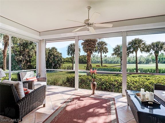 This totally storm protected condo has a fabulous golf view overlooking the 14th par 3 green. The 3br/2ba floorplan provides plenty of room for guests. The kitchen has solid surface Corian countertops, tile backsplash, newer S/S appliances and has a great view. The screened lanai and all windows are protected with electric roll-down shutters. Tile on a diagonal runs through the living areas into the lanai. The laundry room has newer W/D. A/C new in 2017. The low quarterly dues include building and flood insurance (though no Crown Colony homes had any interior water intrusion), landscape, and water. The included master association fee provides 24x7 attended gated access, a community pool, hot tub, 4 Har-Tru tennis courts, and a well-equipped fitness center open 24x7 plus Comcast fiber-optic cable and the Xfinity X1 platform with up to 4 TV/DVR boxes, and high-speed Wi-Fi Internet, all part of the dues - over a $700 quarterly value at retail. Membership at The Golf Club at Crown Colony is optional. * Special * A golf membership purchased within 30 days of closing on this home will allow a $10,000 reduction in the Club initiation fee. This Club was chosen for the 2022 LPGA $1.5M Drive-On Championship, hosting the world's top women golfers.