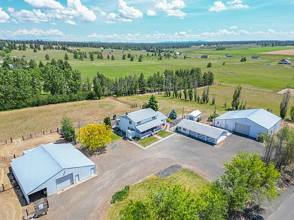 Close In Horse Property w/Multiple Shops - 20 min to Downtown Spokane! This Lovingly Cared for 5 Bed/6 Bath Home has So Much to Offer! Some of the Many Features are: Living Rm (w/Fireplace), Dining, Kitchen, Laundry/Mud Rm, ½ Bath & Spacious Main Floor Master Suite w/Sitting Area, Dbl Closets & Lg Custom Bathroom. In the Kitchen there is an Island w/Prep Sink, Wine Fridge, Large Walk-In Pantry & Adjoins a Lg Sun Porch. Upstairs there is a 2nd Full Master Suite, 2 more Bdrms & Full Bath. Lower Level has Family Room w/Russian Fireplace (Superior Heat), Non-Egress Bedroom, Storage & Outside Entrance! Some of the Many Property Features are: 3+ Car (24'x50') Fully Insulated Garage w/Bathrm, Addt’l 65'x50' Shop w/Concrete Floor & Separate 200 Amp Service, Food Prep Room w/Walk-in Cooler, Butcher Space, Stainless-Steel Sink & Counters. There is also a 45'x60' Horse Barn w/Stalls, Addt’l Lean-to off the Back, Tack Room, 10x24 Pump House, Fields & So Much More! Enjoy Farming, Ranching, Business, ADU or Just Relaxing!!