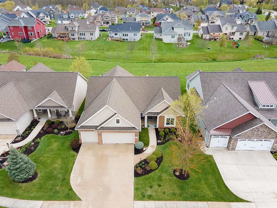 Spectacular and immaculate Twin Eagles NE villa. Professionally landscaped. Enter through the covered porch to the foyer complete with hard wood flooring. Unique ceiling lines in the open concept floor plan with corner fireplace/gas log. Custom window treatments. You will love the access to the extra room off kitchen and primary bedroom that could be 4 season porch or den. Ample cabinetry with breakfast bar, stainless appliances and custom tiled backsplash. Gorgeous tiled Roman shower, double sink vanity and large walk in closet. Huge laundry room with cabinetry, utility sink and workspace. Just in time for the warm weather, you will love entertaining under the covered porch PLUS recently extended patio and custom stone/granite built-in Blaze grill. Additional storage in the garage built-in cabinetry. Dues include lawn mowing/maintenance, mulching, and snow removal.