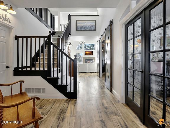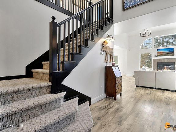 Nestled in the highly coveted Goldenview neighborhood, this stunning home boasts inlet views and an abundance of natural light. Recently remodeled with over $50K in upgrades, including engineered hardwood floors, plush carpeting, fresh paint, modern lighting fixtures, a spacious kitchen island, barn doors, and a cozy media room.The open-concept main floor is perfect for hosting large gatherings, while an office on the main level and all bedrooms upstairs provide ample space for privacy and relaxation. The master bathroom features a jetted tub, walk-in shower, WIC, and breathtaking views. Don't miss this incredible opportunity to own a slice of paradise in one of Anchorage's most sought-after locations.