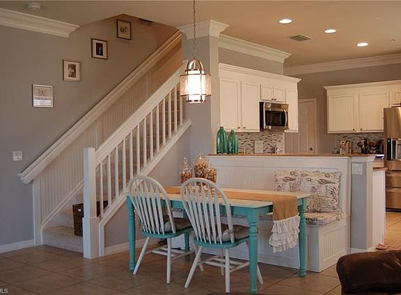 Beautifully updated 2 car garage unit in Verona Pointe. 3 bedrooms with 2.5 baths appointed with upgrades such as granite countertops, custom finished cabinets, crown molding and wainscoting up the stairs. Located at a roundabout in a 6 unit building instead of 8. Extended driveway and directly across from guest parking ensures no parking issues. Over 5K in new appliances including LG refrigerator, KitchenAid dishwasher and Whirlpool Duet front load washer and dryer. Verona Pointe is a gated community in North Naples boasting a community pool and spa, A+ school district, close proximity to parks, dinning, shopping and of course Naples gorgeous white sand beaches. Great opportunity to purchase one of the best lots in Verona Pointe or Milano.