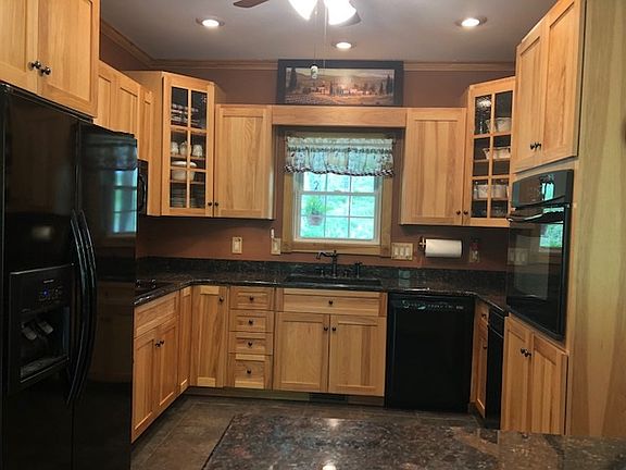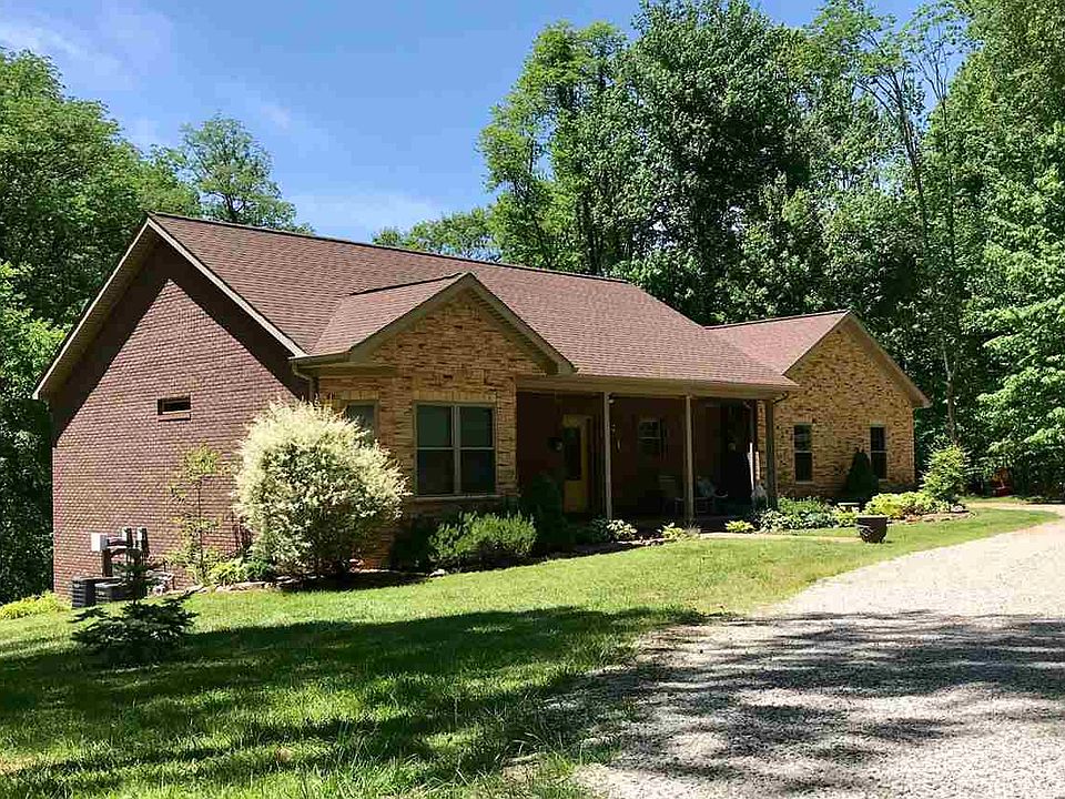 This beautiful custom designed house has 2937 sq ft on very private 5 wooded acres, great for hunting. This home is full of amenities like Fehrenbacher doors and trim, 6" exterior walls, Amish built hickory cabinets, radiant heat floor in the kitchen and master bathroom and hard maple flooring with 9 ft ceilings. You'll love this split bedroom design with a walkout basement that has dual hvac systems, stamped concrete front porch and sidewalk. There is Trex decking along the whole back side of the house that overlooks the woods. Basement includes a small wetbar/kitchenette, full bathroom, 2 bedrooms (one being used as an office), family room, workshop/mancave with overhead door for extra storage. The laundry room has a half bath and hickory cabinets located on the main level for convenience.