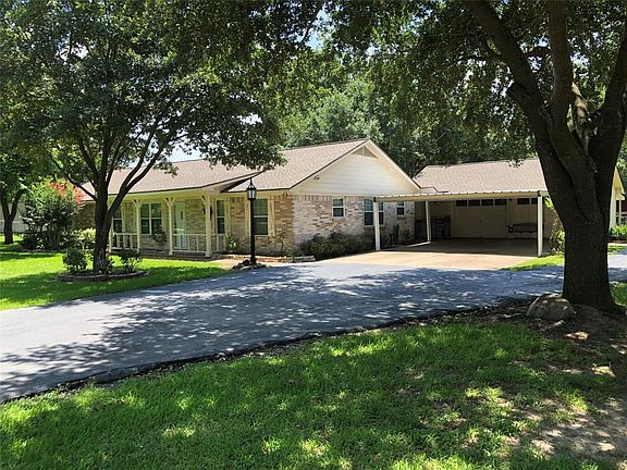 Country living in the Suburbs. Quaint ranch style home is in a quiet neighborhood with lots of mature Texas trees including pecan, oak, cedar, and magnolia trees offering lots of shade during the day. This large, spacious property includes a long asphalt driveway leading to a double carport, and an oversized two car garage with built-in cabinets. The side and rear of the garage have more built-in space including a small workshop area with plenty of electrical outlets, and even has a bird aviary for those who are bird lovers. In the back of the property, you will find a metal barn-like structure (18 X 32) to keep your firewood dry and a fully fenced 30 X 30 garden. Owners recently upgraded to vinyl, low E windows, PEX plumbing installed throughout, added a new roof in June and had all carpet replaced in July of 2019. This property has a water well complete with a filtration system. In addition, the property has never flooded.