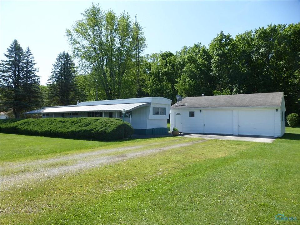 Meticulously maintained throughout! Own your piece of country with a newly replaced septic system, detached 2 car garage with kitchenette area, 2 bedroom mobile home in excellent condition w/ large private awning to enjoy summer evenings. Great location and set up for a future home building spot. Cash or conventional financing only.