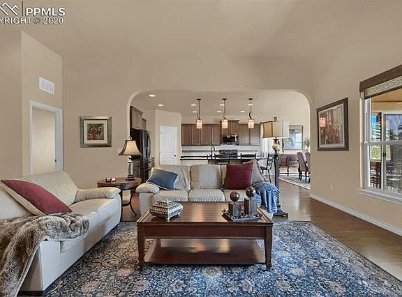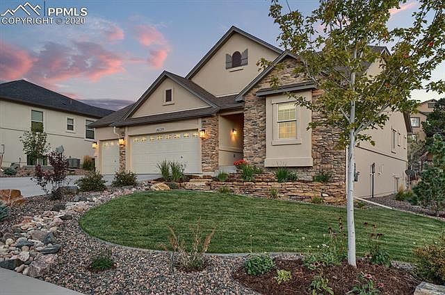 Fantastic Promontory Pointe home with main level living and views! This Vantage home has been lovingly cared for by one owner. The original footprint of the home was pushed back on the lot by special request to take full advantage of Pikes Peak and Air Force Academy views from the expansive patio and beautifully landscaped backyard. Tasteful finishes and fantastic layout. The property sits on a quiet cul-de-sac towards the top of this desirable community. Backs to an open area and walking trail. **Main level master and laundry/mudroom**3 car garage**Huge island**Pantry**Great Room**Storage**